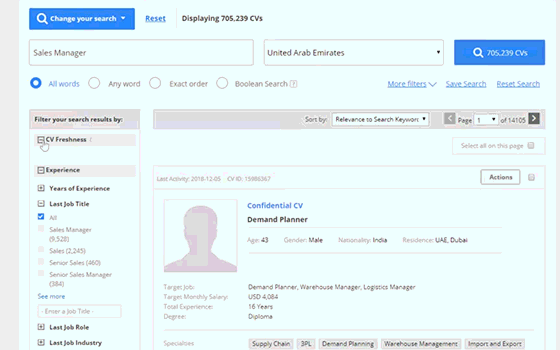 We’re so excited about how POWERFUL the new sidebar filters are. They’re an amazing way to narrow down your search and find the most relevant candidate. You can filter for things like: years of experience, previous job title, specialties, nationality, CV freshness, and many more criteria.
